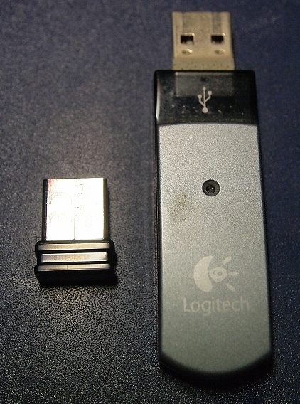 和舊靈貂的接收器比較一下就可以看出差異,體積差了好幾倍。且現在羅技的無線接收器還可以同時接收多個羅技無線設備,如果還有羅技無線鍵盤、搖桿之類的也可以一併接收,不必裝好幾個接收器。