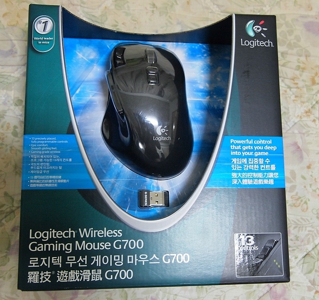 大概是COST DOWN的關係,現在羅技、微軟滑鼠都很少做多按鍵的設計,多按鍵的設計多是為了遊戲而做。羅技現在按鈕最多的當屬這隻G700了,包裝盒也寫得很清楚是遊戲滑鼠,有13個按鍵的設計,可以自由定義各按鍵的功能,以及每秒1000次的回報速度,讓玩家的操作可以更迅速靈敏,回傳速度不輸給有線滑鼠,但這個設計很耗電。