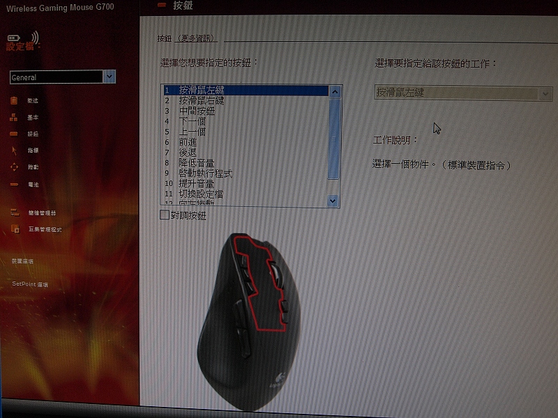安裝好驅動程式後,就可以自定義各個按鈕的功能。