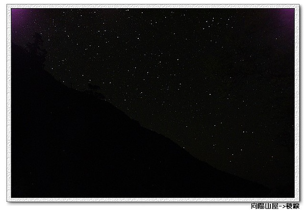 凌晨兩點山屋又開始熱鬧了,起床時發現滿天星斗,用小腳架勉強曝光60秒,也只能拍出一點點Orz