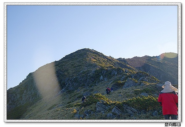 雖然嚮導說來回只需約半小時,但攻向陽山可也不簡單,先爬上一段不輸好漢坡的陡坡,再沿山腰走一段路後,才是真正攻頂的開始。