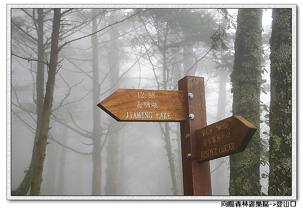 要從遊客中心沿"向松"與"松濤"步道步行2公里後才能到達真正的嘉明湖登山口。