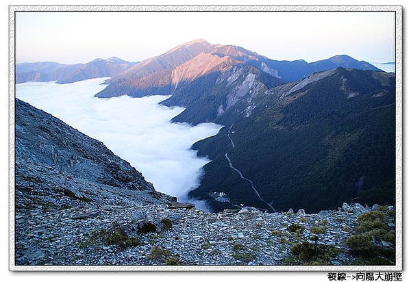 向陽山海拔3603公尺,百岳中排名第16名,其特色為山體廣大高聳,山峰北側有直落一千公尺的懸崖。