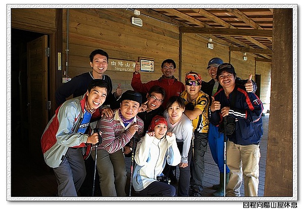 八點半回到向陽山屋和前一天被迫撤退留在這的Kay會合。免不了的一定要拍照留念啦!