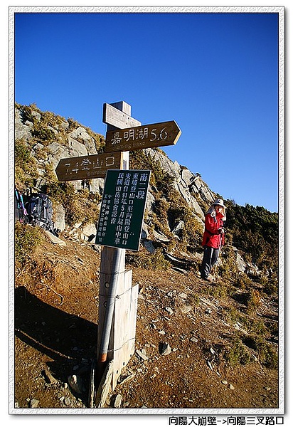 好不容易過了好漢坡,終於來到登向陽山的三叉路口,到這裡可以卸下裝備,輕身攻向陽山頂即可。