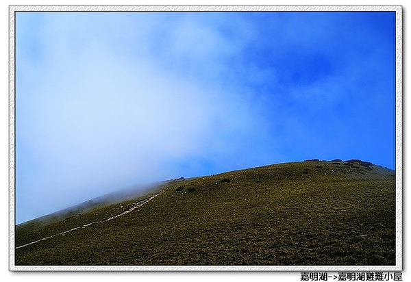 伴隨著雲霧的是冷冽的強風,很不甘願的再次爬上那號稱「向陽哭坡」的三上三下,下午四點回到了避難小屋。