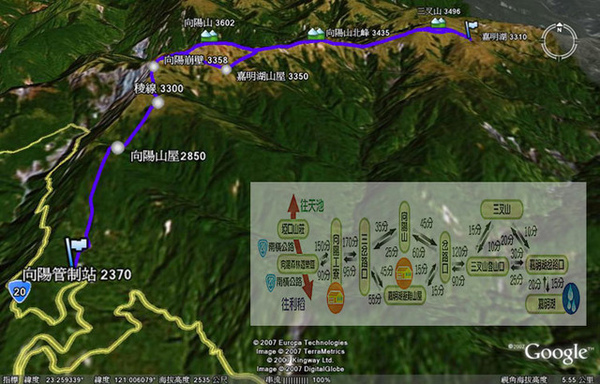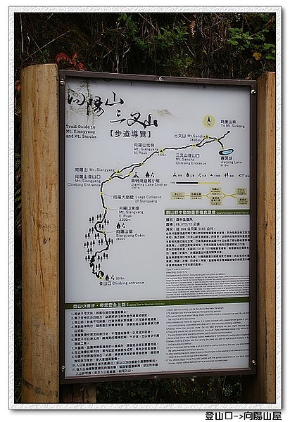 行程介紹,爬嘉明湖一般都順便登向陽山和三叉山兩座百岳,我們主要目標是嘉明湖,所以打算如果太累就放棄向陽山和三叉山。